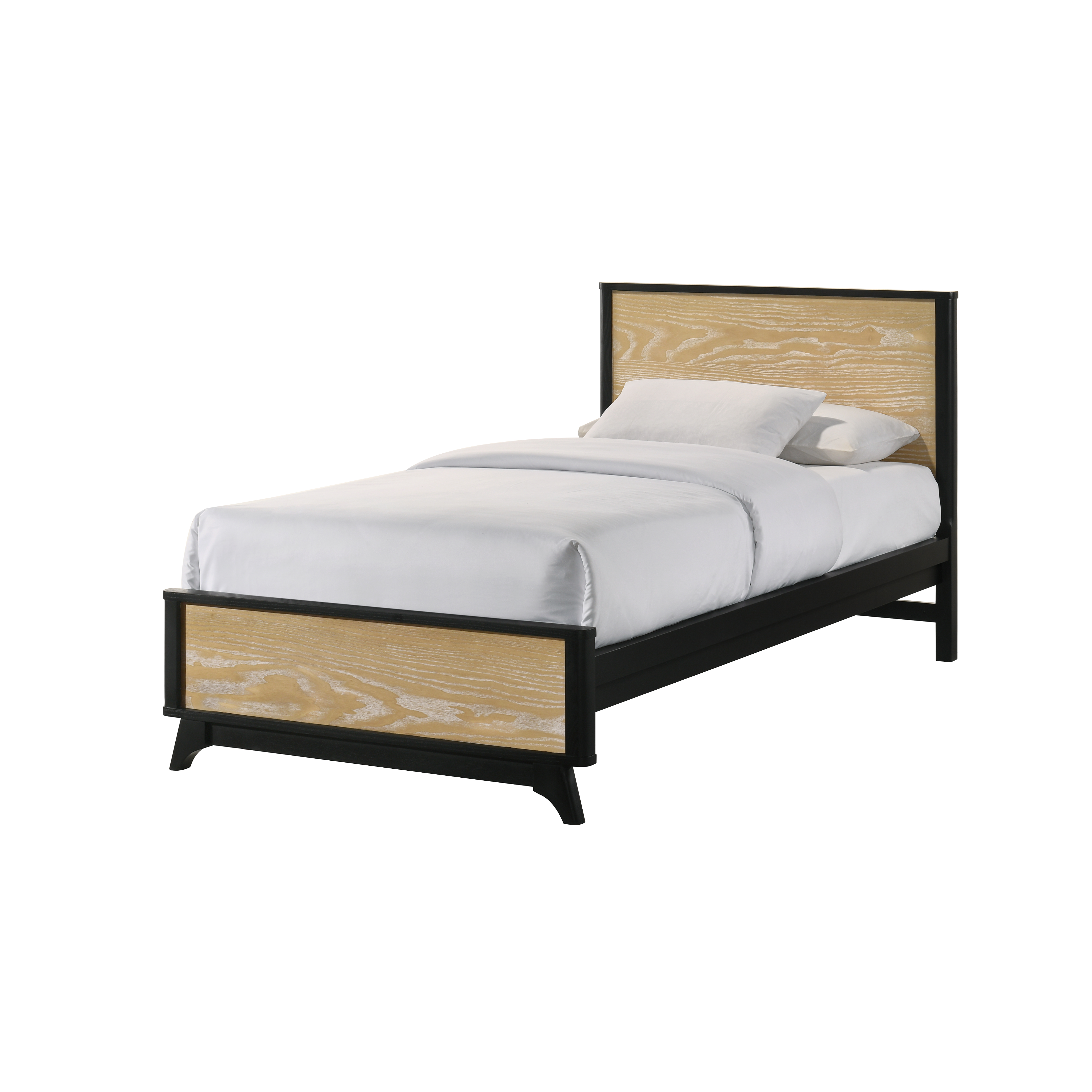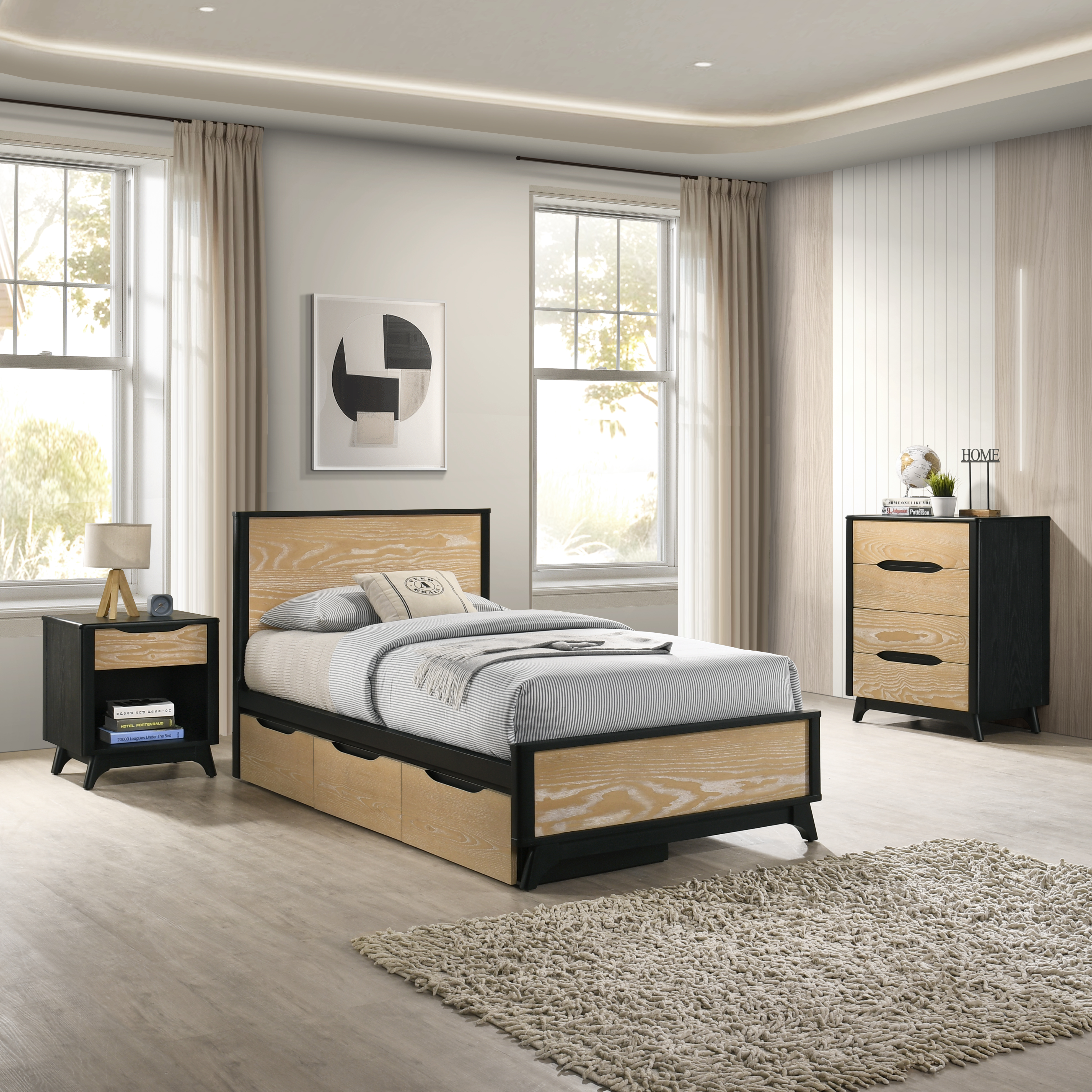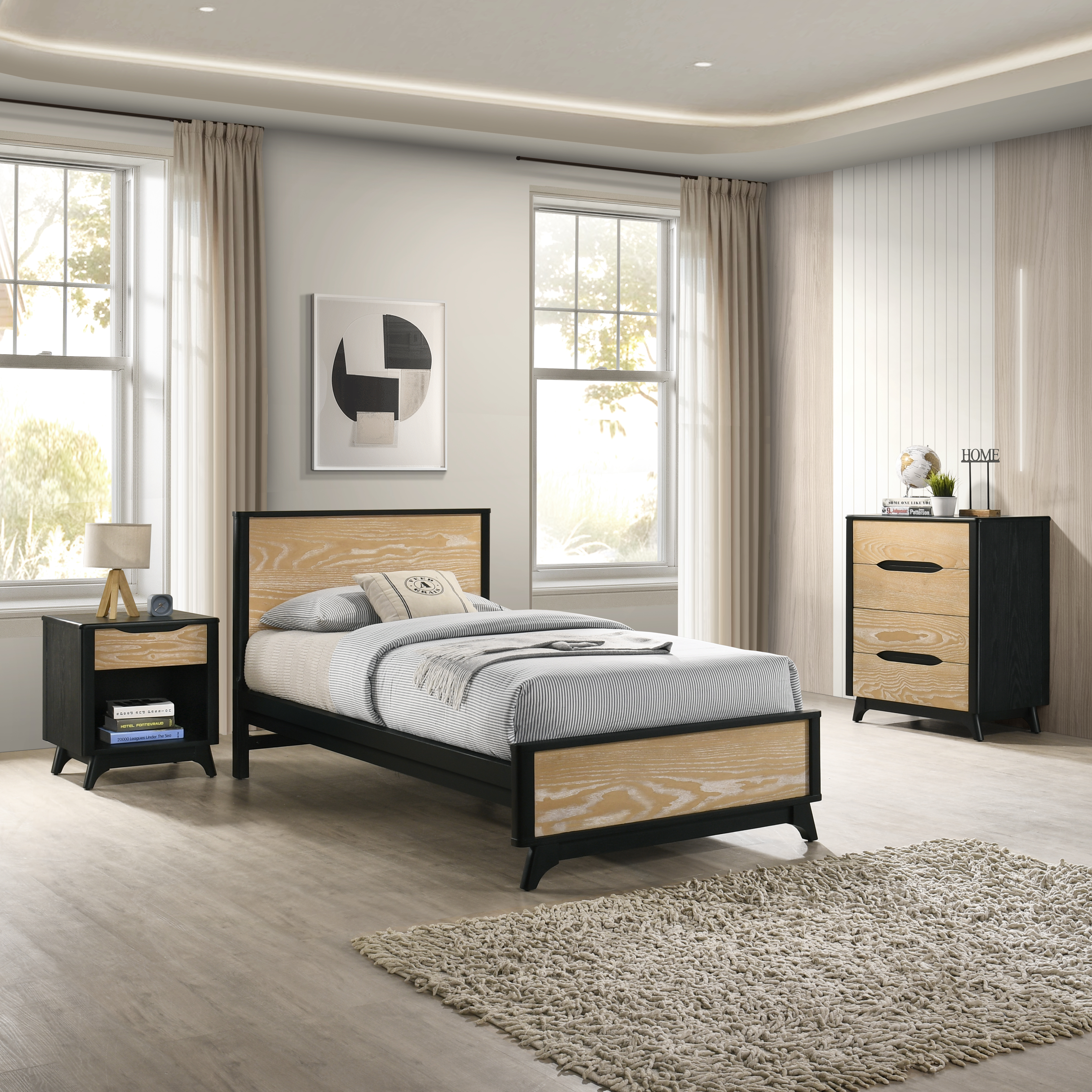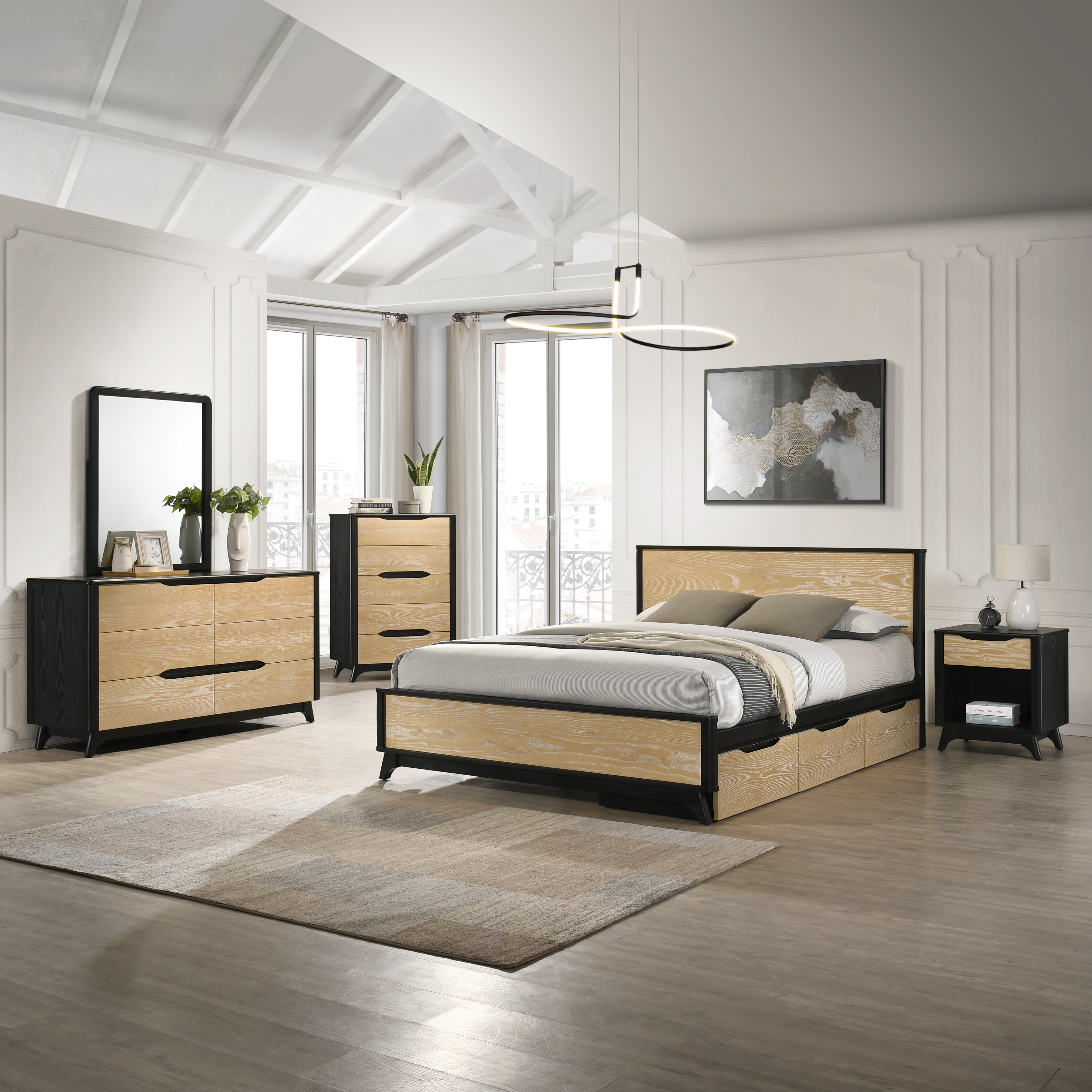 Redefine contemporary comfort with the Dayton Bedroom Set, where clean lines meet warm wood tones for a perfectly balanced aesthetic. Crafted with a sleek black frame contrasted by natural wood grain panels, this collection brings a refined yet inviting feel to any bedroom.