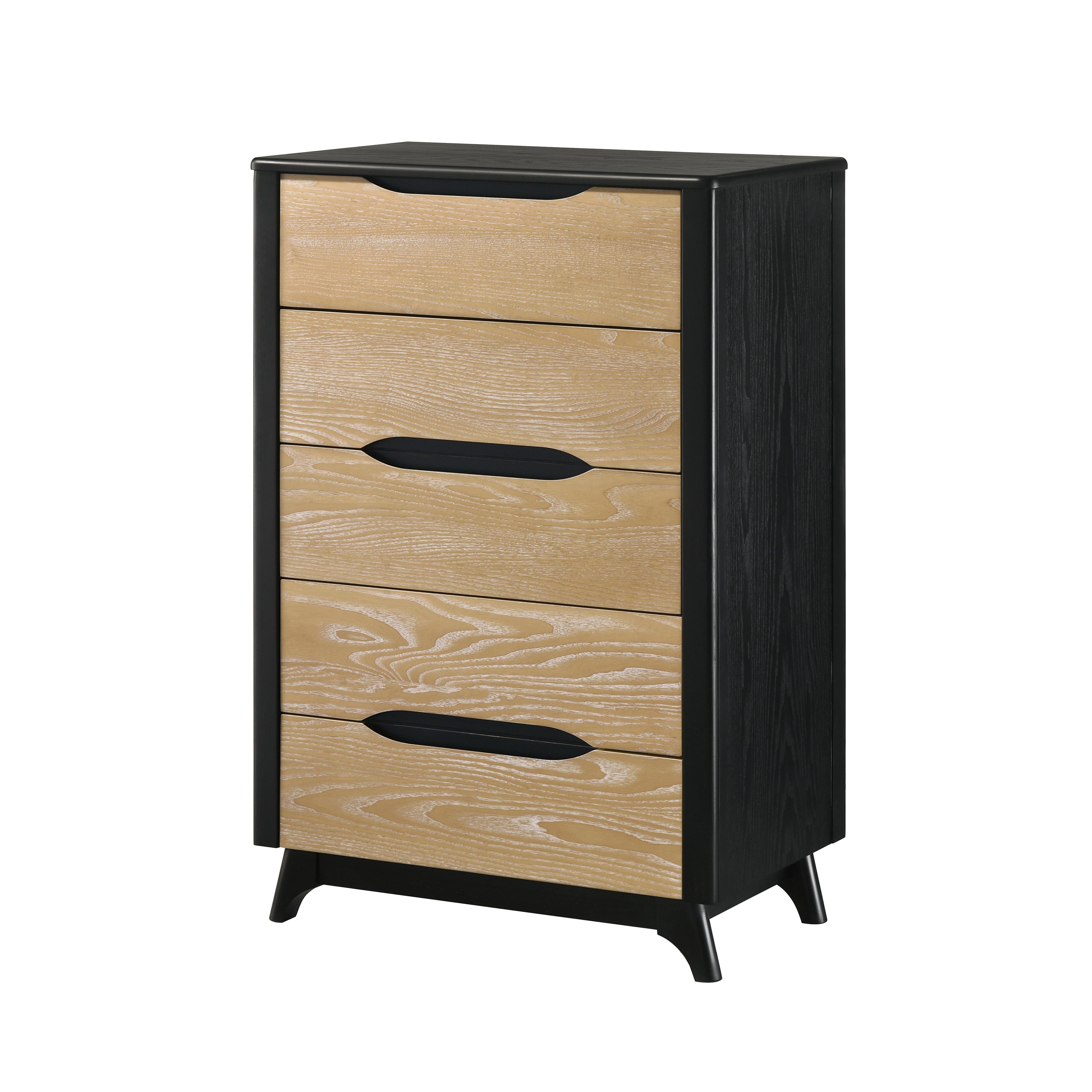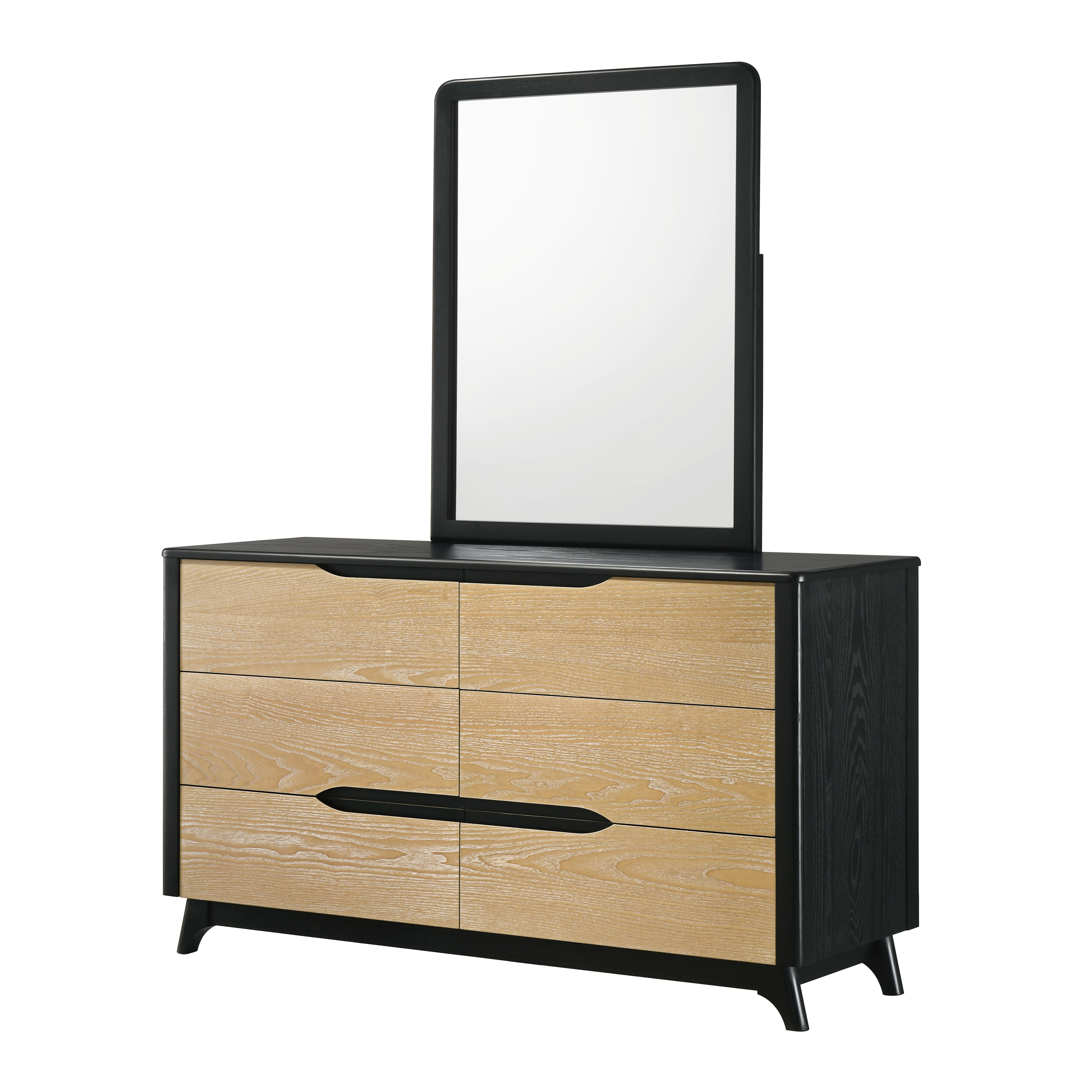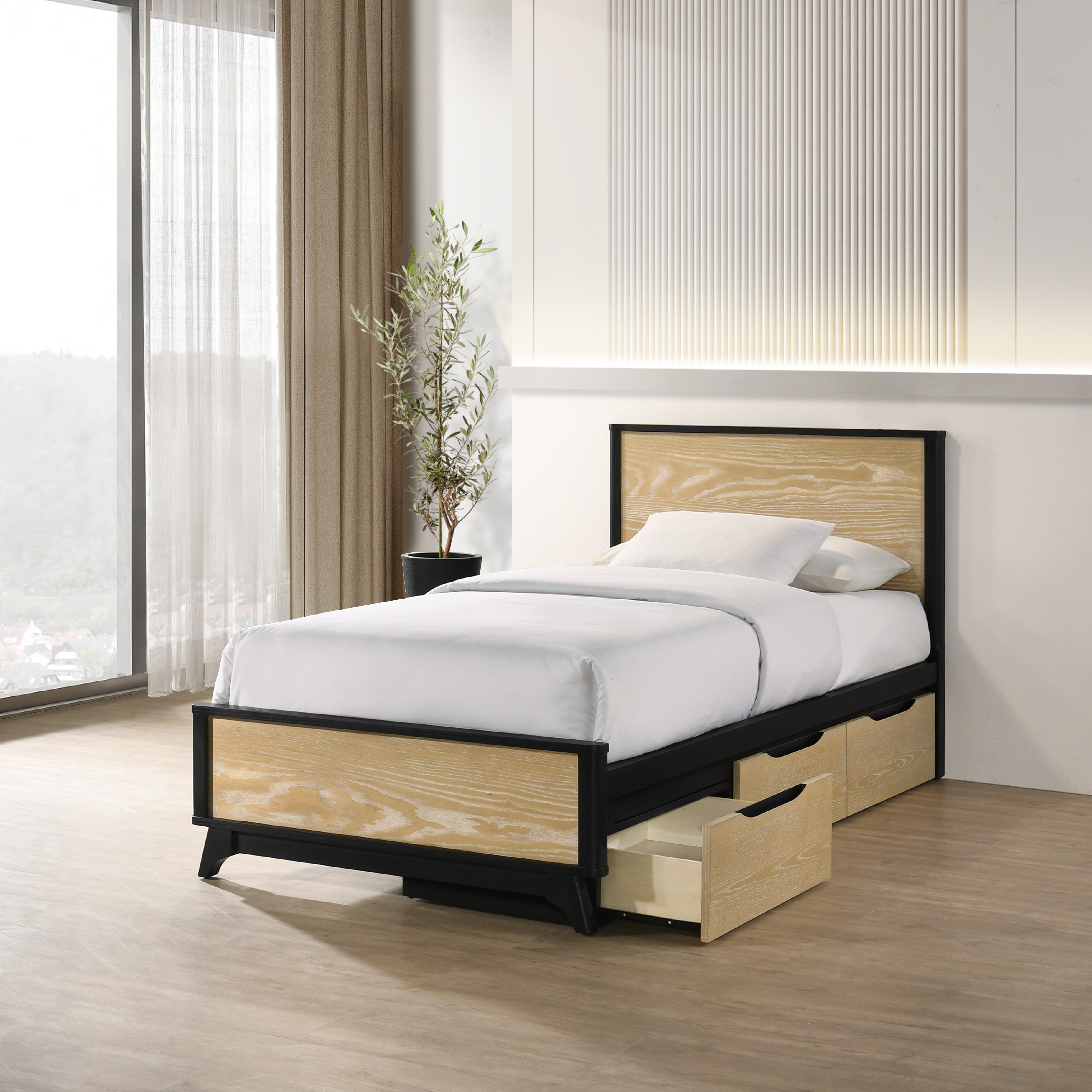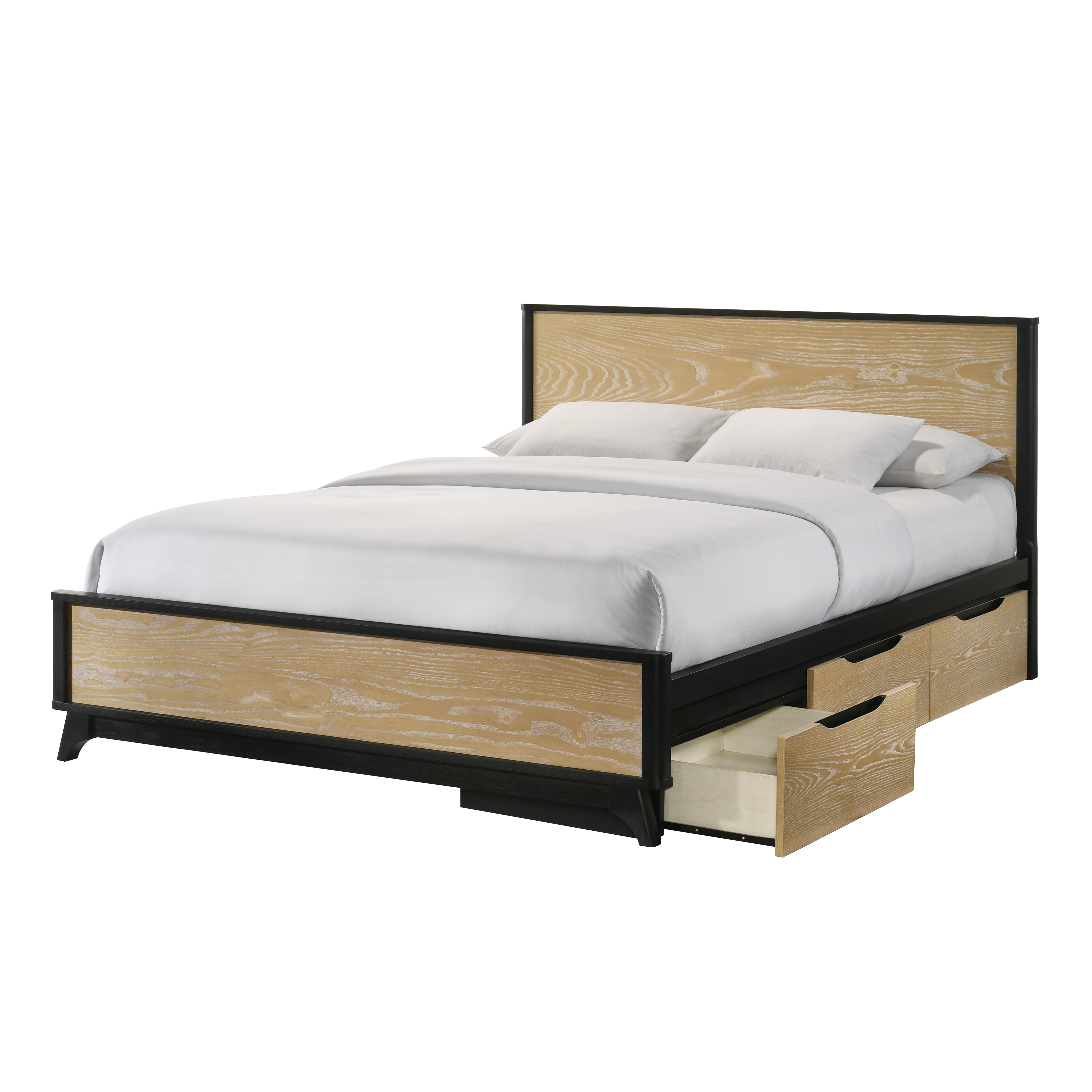 Redefine contemporary comfort with the Dayton Bedroom Set, where clean lines meet warm wood tones for a perfectly balanced aesthetic. Crafted with a sleek black frame contrasted by natural wood grain panels, this collection brings a refined yet inviting feel to any bedroom.